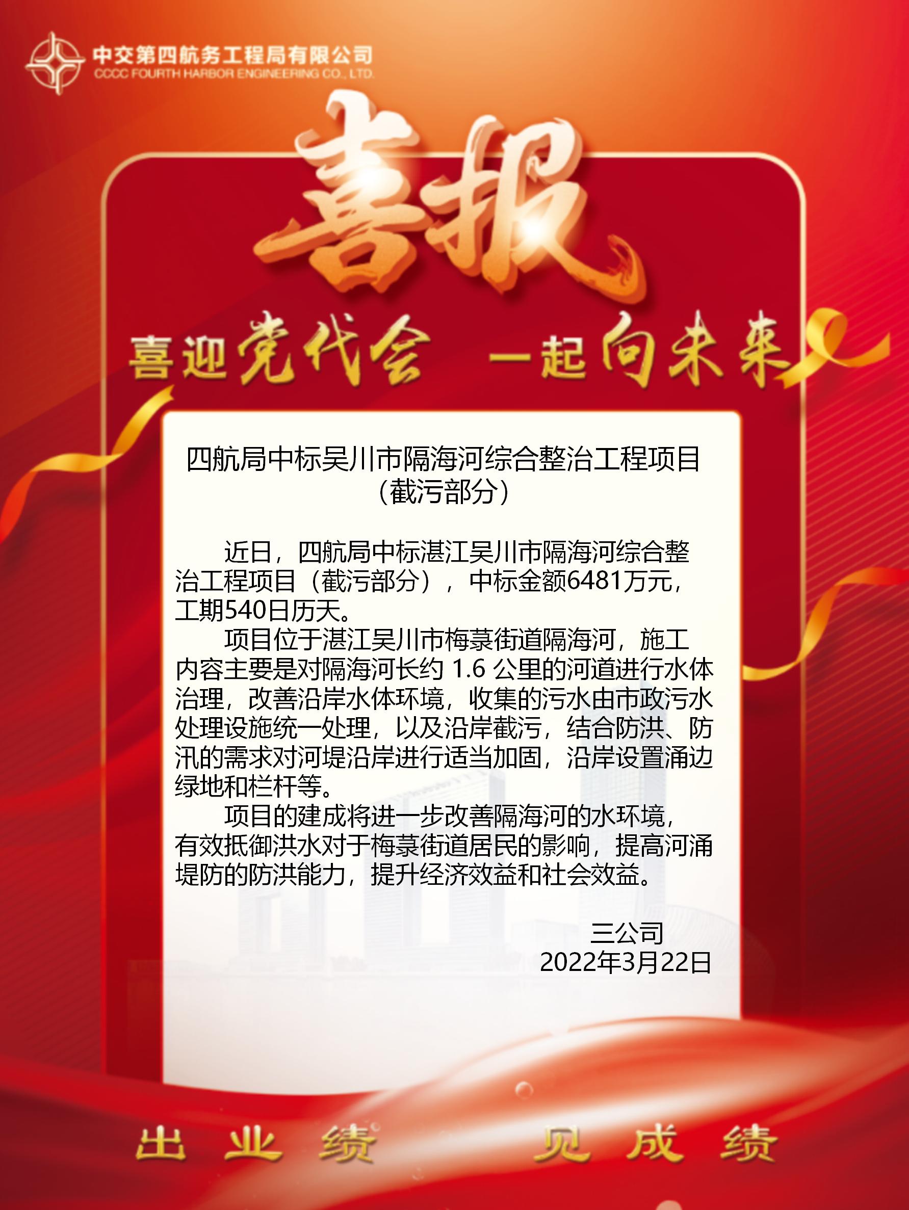 四航局中標(biāo)吳川市隔海河綜合整治工程項(xiàng)目(截污部分)
