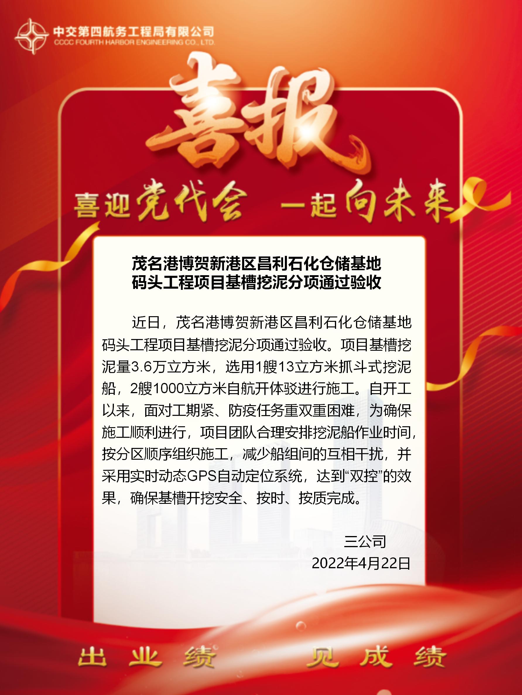 茂名港博賀新港區(qū)昌利石化倉儲基地碼頭工程項目基槽挖泥分項通過驗收