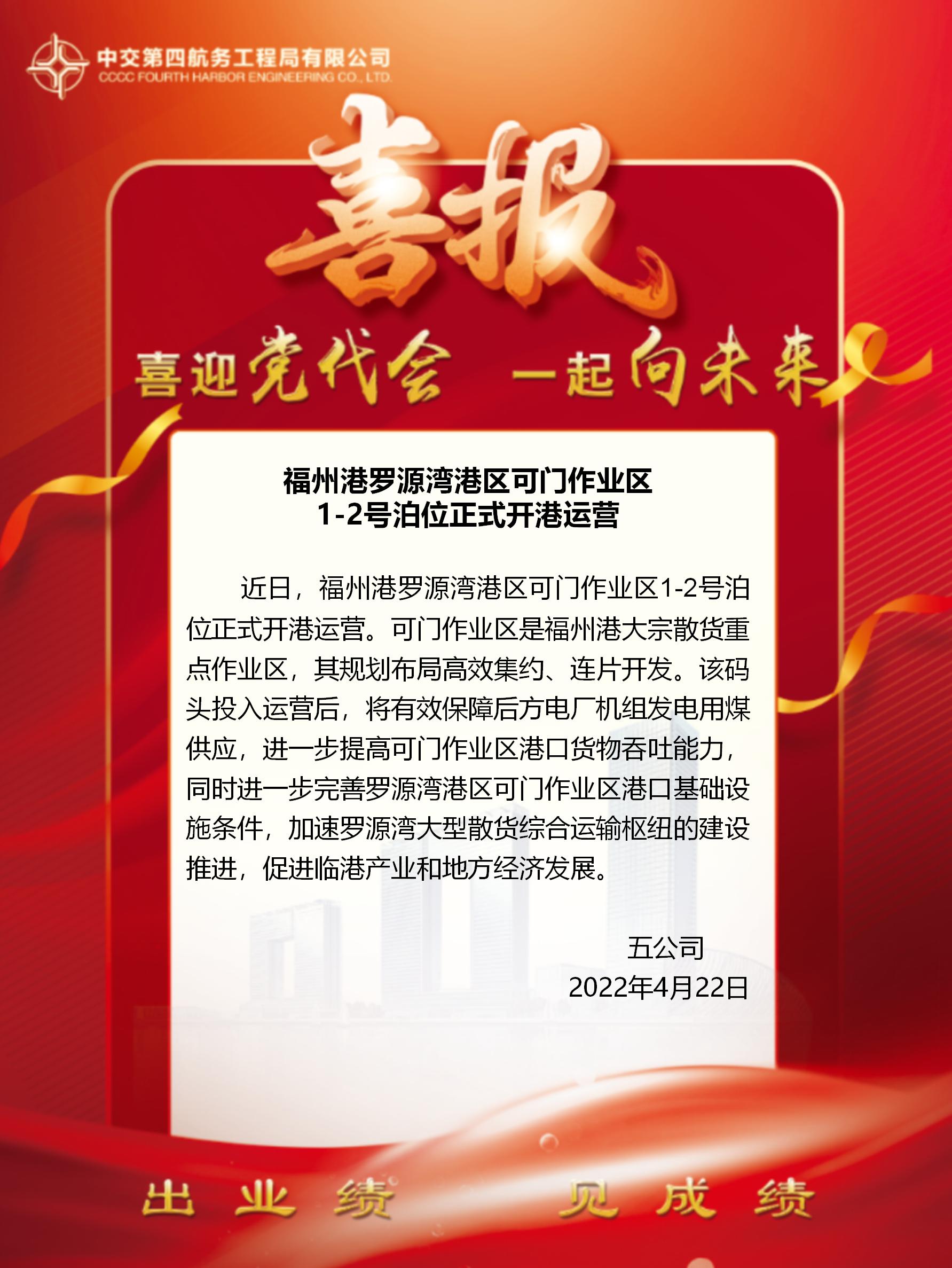 福州港羅源灣港區(qū)可門(mén)作業(yè)區(qū)1-2號(hào)泊位正式開(kāi)港運(yùn)營(yíng)
