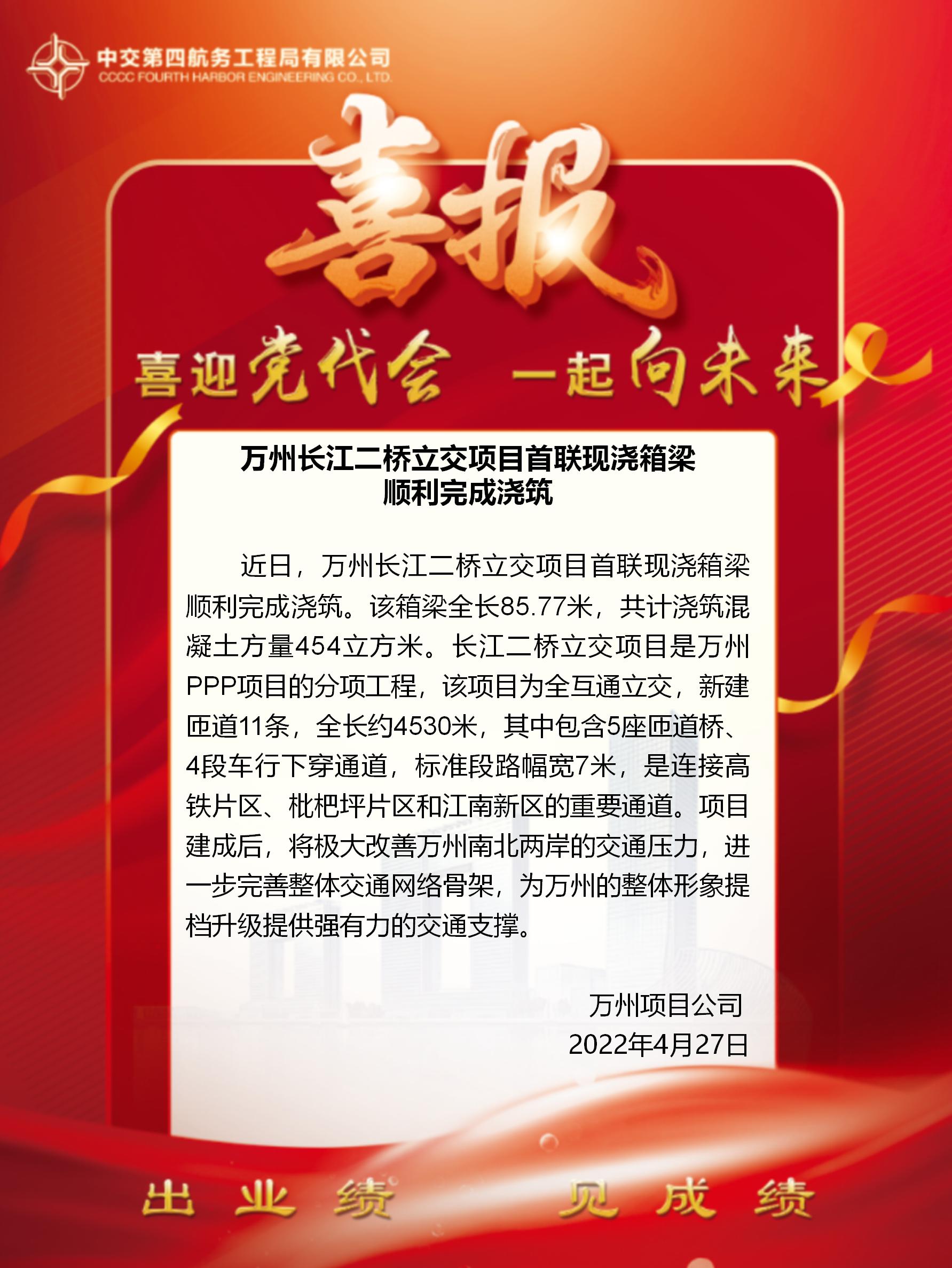 萬州長江二橋立交項(xiàng)目首聯(lián)現(xiàn)澆箱梁順利完成澆筑