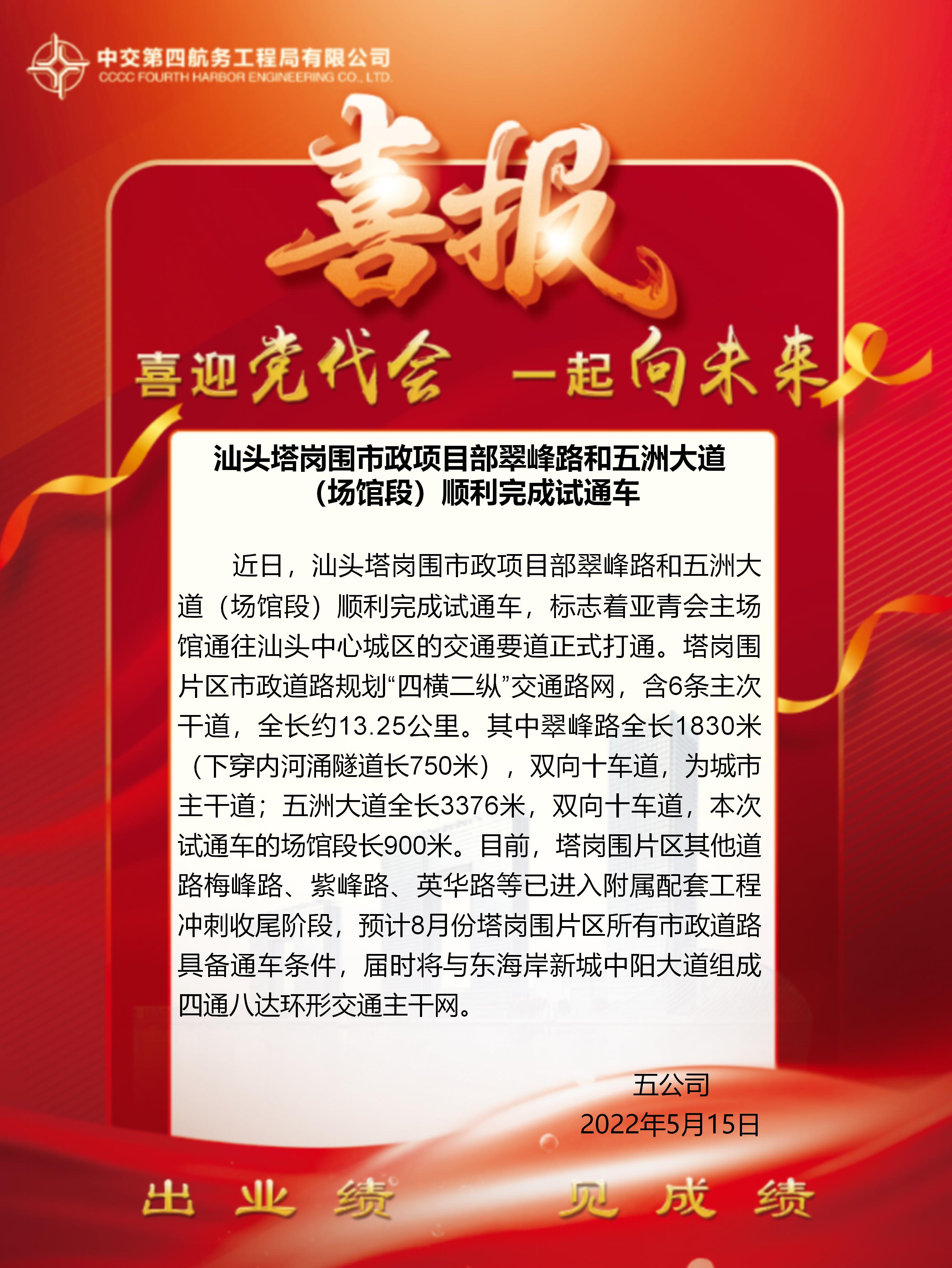 汕頭塔崗圍市政項(xiàng)目部翠峰路和五洲大道(場館段)順利完成試通車