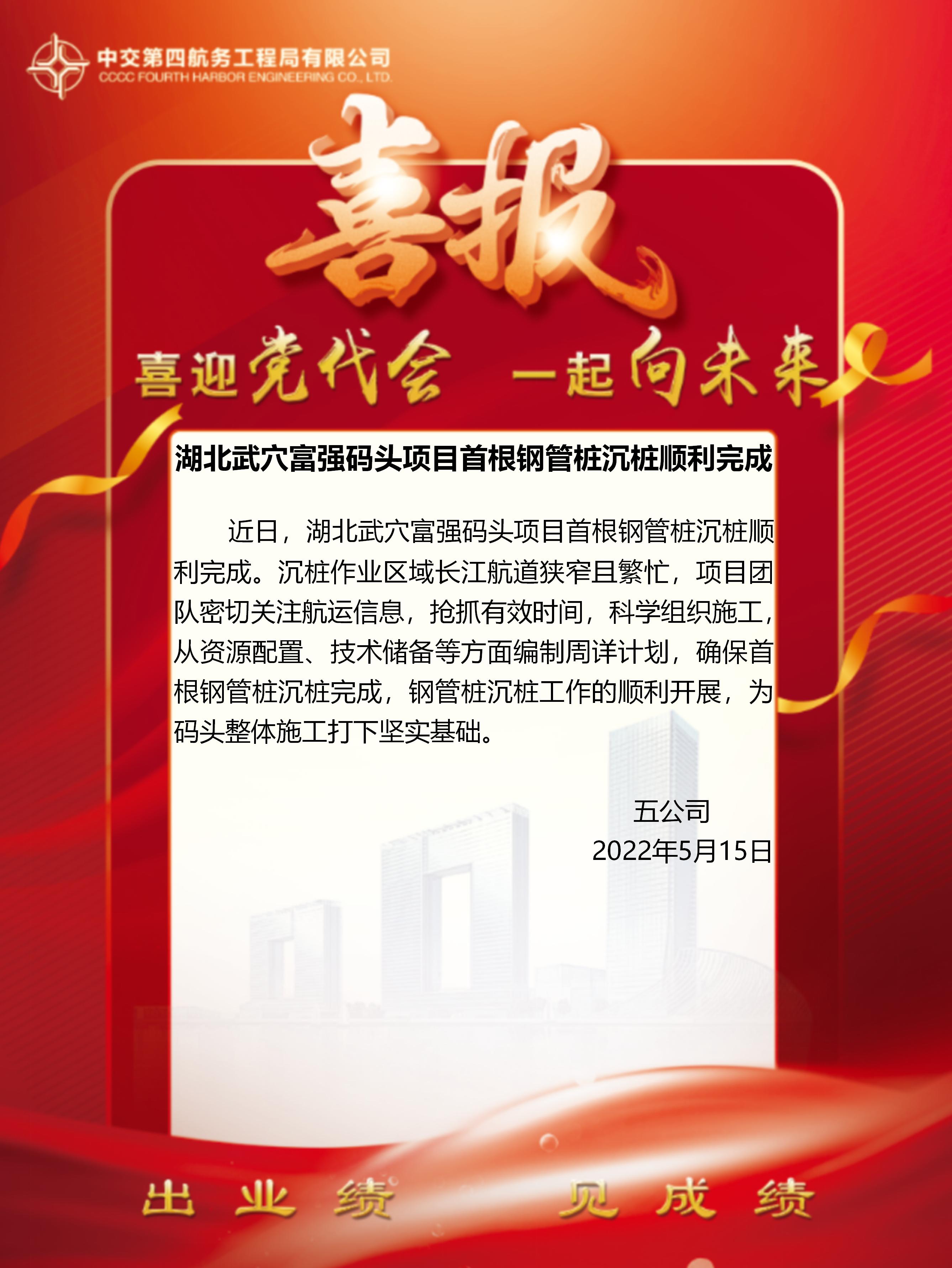 湖北武穴富強(qiáng)碼頭項(xiàng)目首根鋼管樁沉樁順利完成