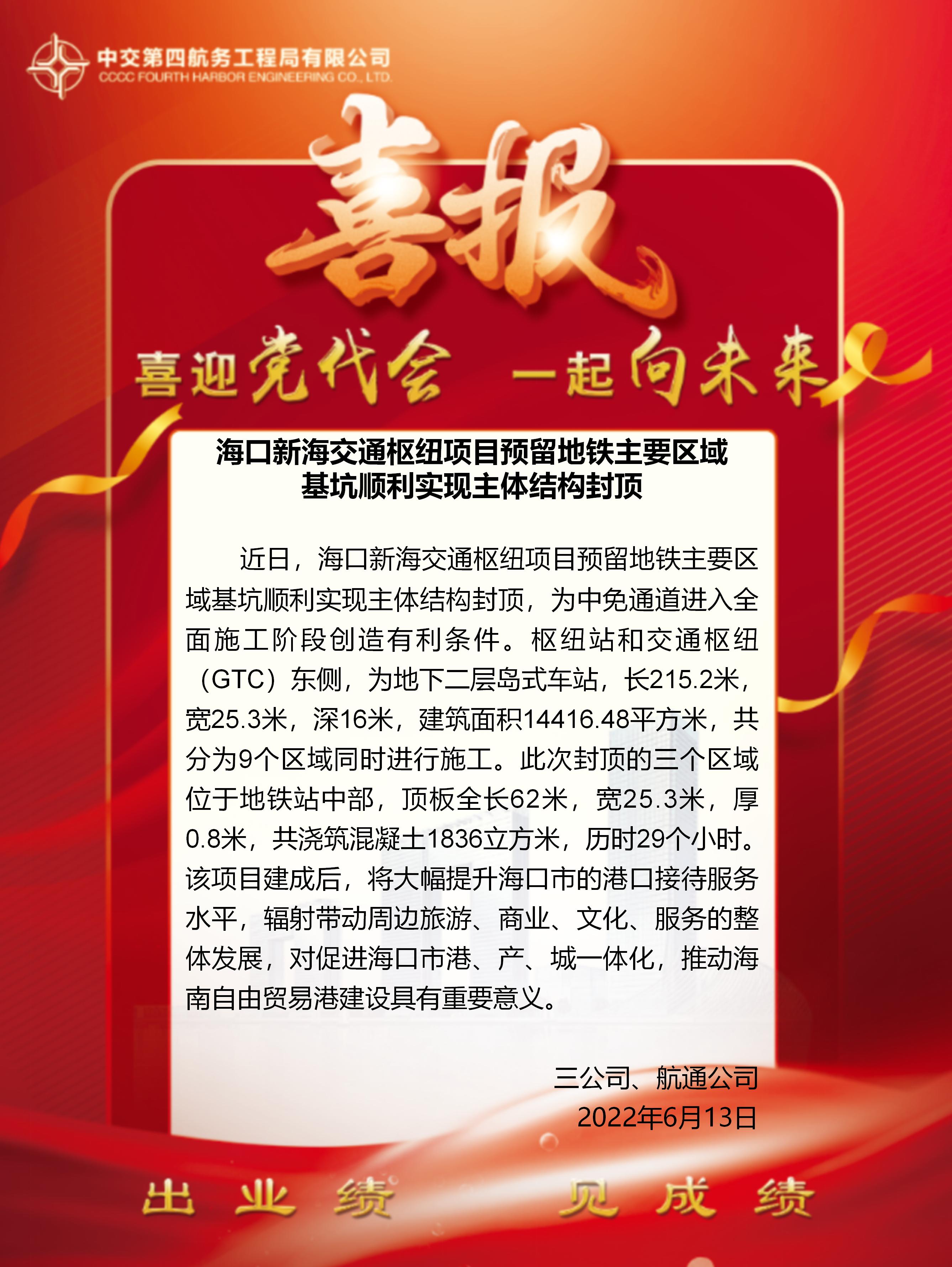 海口新海交通樞紐項(xiàng)目預(yù)留地鐵主要區(qū)域基坑順利實(shí)現(xiàn)主體結(jié)構(gòu)封頂