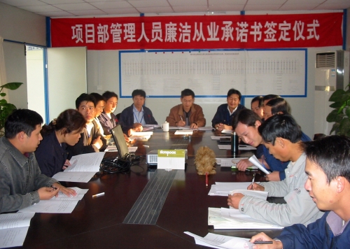 為了加強(qiáng)廉潔建設(shè),規(guī)范工程建設(shè)項(xiàng)目甲、乙雙方的各項(xiàng)活動(dòng),保護(hù)甲、乙雙方的合法權(quán)益,最近,三公司鎮(zhèn)江項(xiàng)目部分別與分包單位、全體管理人員簽定了《工程建設(shè)項(xiàng)目廉潔從業(yè)責(zé)任書(shū)》和《企業(yè)管理人員廉潔從業(yè)承諾書(shū)》。 (潘壽海 司徒健民)