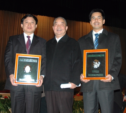 國家優(yōu)質工程獎頒獎大會于12月7日在北京人民大會堂召開,全國各地800多名建設者出席了大會。四航局施工總承包的蛇口集裝箱碼頭二期水工及道堆工程榮獲銀質獎。公司領導黃煥謙(右)、二公司黨委書記江和明(左)分別代表總承包單位和參建單位上臺領獎,并與頒獎領導合影。 (帥叔龍)