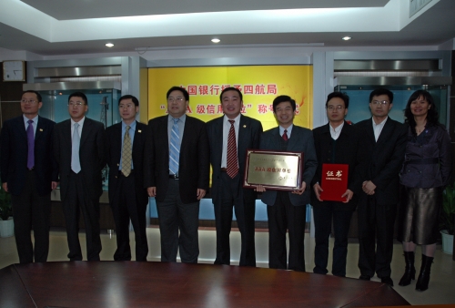 中國銀行廣東省分行授予四航局"AAA級信用單位"稱號,該行副行長曹立聰率有關負責人于1月15日專程送來匾牌和證書。