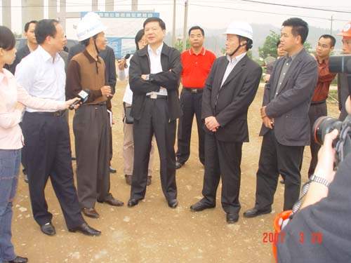 3月28日,佛山市委書記林元和、高明區(qū)委書記馬亮照、區(qū)長(zhǎng)潘志文、副區(qū)長(zhǎng)余中偉等一行,到一公司承建的廣明高速富灣特大橋工地視察工作。林書記充分肯定了目前的進(jìn)展情況和感謝我局對(duì)佛山施工建設(shè)的貢獻(xiàn),并稱四航局是"國(guó)家隊(duì)"。最后在要求廣明高速2008年能按期通車的同時(shí),還希望四航局再接再厲,接下廣明高速佛山段的經(jīng)營(yíng)權(quán)。 (蘇鐵忠)