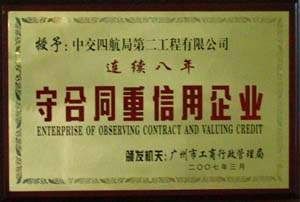 近日,二公司被廣州市工商行政管理局、廣州合同管理協(xié)會(huì)評(píng)為2006年度"守合同重信用企業(yè)",這是該公司連續(xù)8年獲得此榮譽(yù)稱號(hào)。