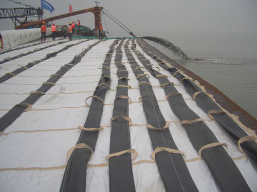 七月三日,三公司洋口港區(qū)接島引堤工程正式開工,項(xiàng)目部在洋口港區(qū)人工島施工現(xiàn)場舉行開工儀式。該工程引堤總長1588.6米,總工期為22個月。開工當(dāng)日,順利鋪放砂肋軟體排1100平方米。