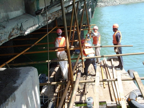由于東非工業(yè)落后,社會(huì)發(fā)展緩慢,項(xiàng)目部前期在購(gòu)置進(jìn)場(chǎng)物資、材料方面遇到了很大的困難。隨著第一、二期集裝箱的到達(dá),及對(duì)當(dāng)?shù)夭牧瞎?yīng)市場(chǎng)、勞工市場(chǎng)的熟悉,項(xiàng)目部已圓滿完成了前期的籌備工作,并制訂了詳細(xì)的施工方案報(bào)業(yè)主批準(zhǔn),即將全面展開橋梁支座更換、引橋沉降及道路修復(fù)、橋臺(tái)護(hù)坡修復(fù)、面板硅烷防腐、主梁陰極保護(hù)、橋梁服務(wù)設(shè)施更換等永久性施工工程。