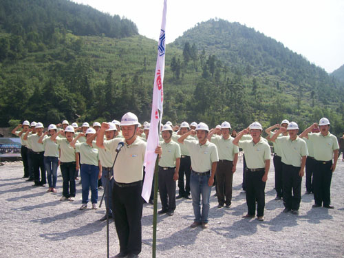 2007年8月8日下午,湖北滬蓉西X8標(biāo)項(xiàng)目部舉行了隆重的青年突擊隊(duì)授旗儀式。滬蓉西高速公路指揮部副指揮長(zhǎng)韓宏偉、黨委副書記洪文革,湖北恩施州常委、州直工委副書記、州工會(huì)主席楊陳清,恩施州團(tuán)委書記向紅林、團(tuán)委副書記黃明暢,四航局黨委副書記阮祥發(fā)、副總經(jīng)理周達(dá)培,一公司黨委書記萬(wàn)軍杰,一公司總工李加才參加了授旗儀式。