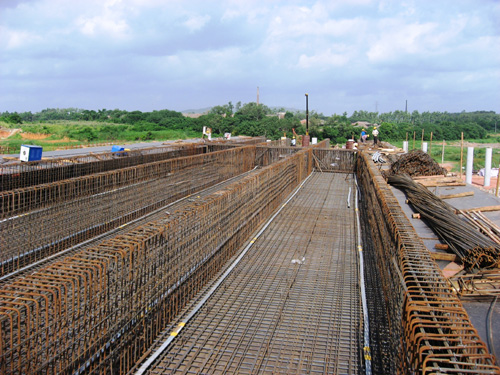 廣明高速公路第二合同段項(xiàng)目部SG1標(biāo)段在業(yè)主單位、設(shè)計單位、監(jiān)理單位及西二環(huán)南段業(yè)主等各方的大力支持下,全體員工齊心協(xié)力、頂烈日、冒酷暑,經(jīng)過五十余天的艱苦奮戰(zhàn),于8月17日6時28分順利完成大崗互通立交跨西二環(huán)南段高速公路全部箱梁的混凝土澆筑任務(wù),比原計劃提前1.5天。