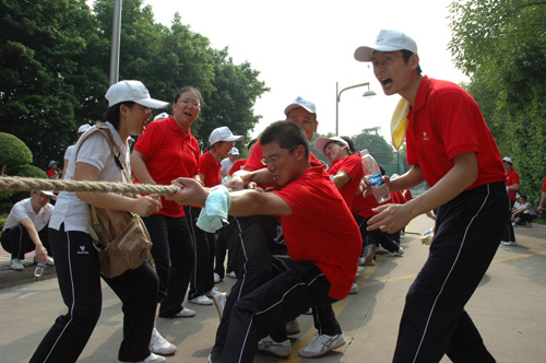 四航局工會主席肖干生主持開幕式,在運動員代表隊入場和升旗儀式后,四航局總經(jīng)理孫國強致辭。他介紹了四航局今年經(jīng)營生產(chǎn)的喜人形勢,強調(diào)建設(shè)企業(yè)文化的重要意義,高度評價了舉辦企業(yè)文化節(jié)對構(gòu)建和諧四航、推動又好又快發(fā)展的重要作用。董事長、黨委書記梁卓仁宣布四航局第二屆企業(yè)文化節(jié)正式開幕。在歡樂明快的樂曲中,四航局領(lǐng)導(dǎo)和所有運動員手拉著手,跳起了集體舞。開幕式還進行了體現(xiàn)力量、活力、團隊精神的拔河比賽和趣味體育比賽。