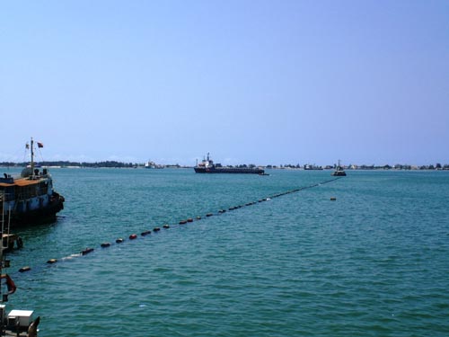 業(yè)主代表、咨工到施工現(xiàn)場對管線的成功下水表示熱烈祝賀。目前,該管道已順利拖至安裝地點,正在進行主碼頭與油碼頭之間的就位調整工作,下一步將進行陸上豎向管線與水下管線連接部分的焊接,預計該部分焊接工作將在4天之內完成。