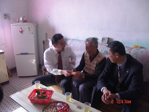 會后,梁卓仁董事長等一行在三公司領(lǐng)導(dǎo)的陪同下,走訪慰問了離退休職工、困難職工以及孤兒家屬代表,向他們致以節(jié)日的問候并送上慰問金。在慰問過程中,梁董事長認(rèn)真聽取了離退休老同志及困難職工的意見,對他們提出的困難和要求當(dāng)場指出了解決的辦法。