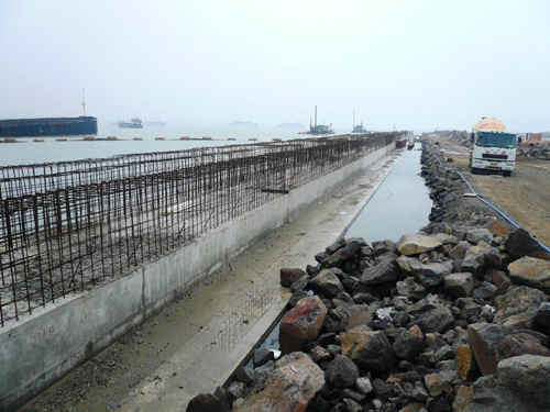 海口港二期碼頭項目部掀起趕工熱潮