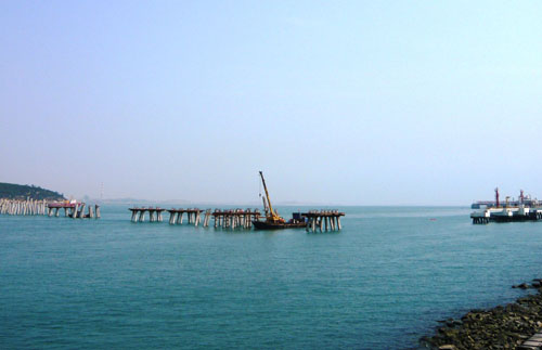 砼方樁施打的提前完成,為后續(xù)工作的開展提供了有利條件。另外,預(yù)制空心板也于當(dāng)天開始張拉作業(yè),第一駁鋼管樁已運(yùn)抵現(xiàn)場,近日將開始施打。