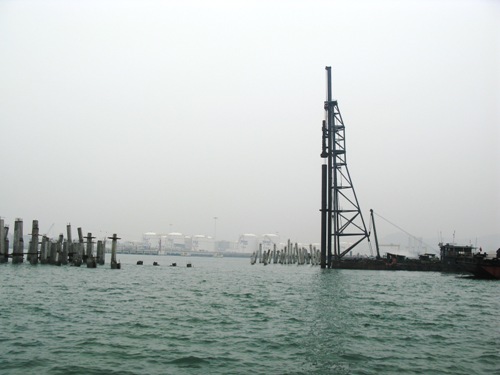 3月29日,福建泰山石化10萬噸級碼頭工程順利完成主引橋工程156根方樁、27根鋼管樁的沉樁任務,為各分項工程的全面鋪開創(chuàng)造了有利條件。