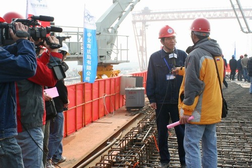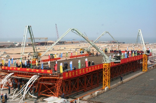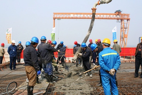 3月30日, 青島海灣大橋工程首件60米箱梁在該項(xiàng)目部預(yù)制場(chǎng)澆注成功,標(biāo)志著青島海灣大橋主體工程正式進(jìn)入施工階段。