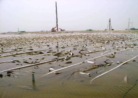 據(jù)悉,采用淺表層處理工藝快速加固超軟弱浮泥的成功引起了業(yè)內(nèi)同行及天津港、南沙港業(yè)主的極大興趣, 4月14日,中交天津港灣工程研究院有限公司和天津港務(wù)(集團)有限公司的相關(guān)領(lǐng)導(dǎo)蒞臨研究院,專程了解廈門軟基試驗段和淺表層加固超軟弱地基新技術(shù)的實施情況,在聽取了試驗段總結(jié)報告、觀看了關(guān)鍵工序的施工錄像和水上插板船后,給予了高度的評價并邀請海滄項目負(fù)責(zé)人張功新博士到天津授課。
