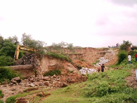 南倉(cāng)陂和開口石路于2005年被山洪沖毀后,由于沒有資金,三年來(lái)一直無(wú)法得到修建,靠南倉(cāng)陂取水灌溉的600多畝農(nóng)田也因此成了"望天田";開口石路由于崩塌,連手扶拖拉機(jī)都無(wú)法通行,使經(jīng)開口石路出行的7條自然村的出行和運(yùn)輸成了困難,村民在開口石路崩塌處打上幾根木樁,對(duì)付著行走,情景真是險(xiǎn)象環(huán)生。
