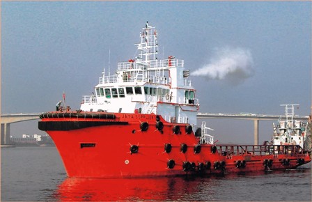 該船長58.7米、寬14.6米、設(shè)計(jì)吃水4.5米、載重量1400噸、系柱拖力60噸,主要用于海上石油平臺的拖帶、消防、供應(yīng)和住宿。