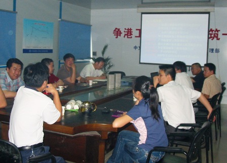 該項(xiàng)目部向客人介紹了在建的湛江港新建油碼頭、寶滿集裝箱泊位、東海龍騰物流碼頭的規(guī)劃、建設(shè)和施工等,并通過幻燈片詳細(xì)介紹了油碼頭的施工條件、施工特點(diǎn)、施工工藝及施工管理等情況,隨后帶領(lǐng)客人到新建油碼頭、鐵礦工石碼頭進(jìn)行參觀。
