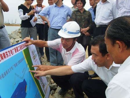 6月25日,海南省副省長李國梁一行在華能海南東方電廠籌建處主任閻友寧的陪同下,來到碼頭現(xiàn)場檢查指導(dǎo)工作。
