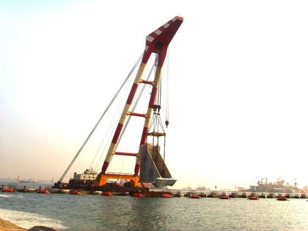 同時,正在緊張施工的船塢工程挖泥、拋石、打夯均已完成,水下整平已完90%,扶壁預(yù)制20件,已完63%,扶壁安裝17件,回填砂已完50%,沉樁80根,完成50%;工作車間樁基已全部完成,面板已完成70%;主碼頭延長段的挖泥已完成3500方。