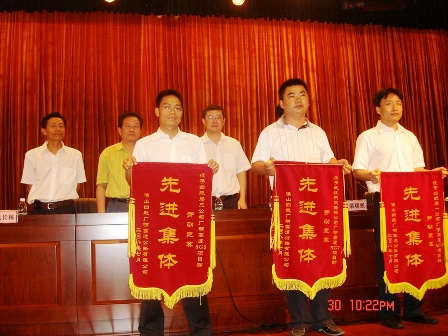 為了表彰先進、鼓舞士氣,充分調動廣大建設者的積極性,確保廣明高速公路明年4月建成通車,7月30日,廣明公司隆重舉行"廣明高速公路勞動競賽總結表彰暨富灣大橋‘保安全、保質量、保工期’三保誓師大會",對上階段"四比四賽"勞動競賽活動中涌現的先進集體和個人進行表彰,為富灣大橋項目部青年突擊隊授旗。廣明高速公路各參建單位共300多人參加。