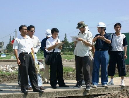 8月1日和3日,由上海市嘉定區(qū)建設(shè)用地事務(wù)所、土地所、業(yè)主、監(jiān)理和各村鎮(zhèn)代表組成的征遷工作小組對四航局承建的滬寧城鐵全線7.66km管段內(nèi)的永久性紅線用地(寬18米)進(jìn)行了清點(diǎn)核量確認(rèn)工作,正式移交了5.8km正線用地(除廠房、房屋河道外)給我方施工,占正線長的76%。