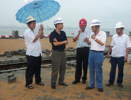 8月9日至10日,由海南省質(zhì)監(jiān)站副站長陳穎新帶領(lǐng)的水運(yùn)工程檢查組到三公司??隈R村港和海口港二期碼頭工地開展質(zhì)量安全檢查。