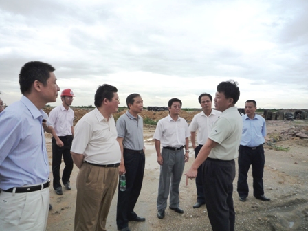 8月7日上午,中山市副市長馮煜榮,中山市委常委、中山火炬開發(fā)區(qū)書記馮梳勝,業(yè)主廣新外貿(mào)集團董事長歐廣一行到研究院中山軟基處理工程施工現(xiàn)場視察。