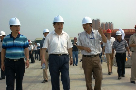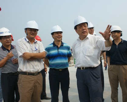 8月13日,原鐵道部副部長、現(xiàn)任京滬高鐵有限公司董事長蔡慶華在中交京滬高鐵項(xiàng)目部副總經(jīng)理王建一行的陪同下視察了四航局上海嘉定制梁場。