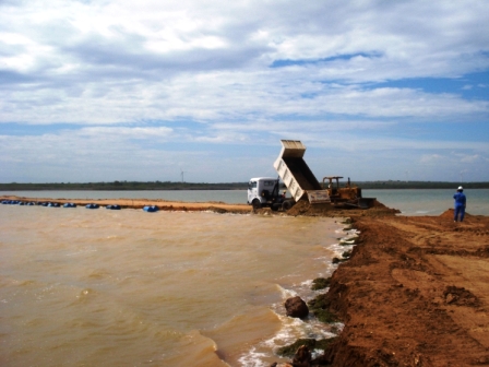 大型圍堰施工是漢班托塔項目的重點、難點,特別是圍堰的安全性、抗?jié)B抗漏性可謂整個項目成敗的關鍵。該工程圍堰總長4238米,布置在基坑周圍,圍堰結構主要采用砂堤(或土堤)作為擋水結構,包括了圍堰挖泥、砂或土回填、塊石回填、強夯壓實等施工內(nèi)容。