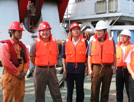 當(dāng)天,董事長梁卓仁在二公司總經(jīng)理李惠明等領(lǐng)導(dǎo)陪同下來到施工現(xiàn)場向項(xiàng)目部表示祝賀。梁董事長參觀了剛剛安裝完畢的箱梁,仔細(xì)詢問了安裝過程。他指出,要嚴(yán)格按照計(jì)劃工期開展施工,確保工程質(zhì)量,克服現(xiàn)有不利因素的影響建好海灣大橋,打出四航局在北方市場的知名度;同時(shí)也要處理好與業(yè)主、監(jiān)理、兄弟單位及地方行政單位的關(guān)系,做好服務(wù)工作,在各施工單位競賽中互相學(xué)習(xí),和諧相處,爭當(dāng)一流。
