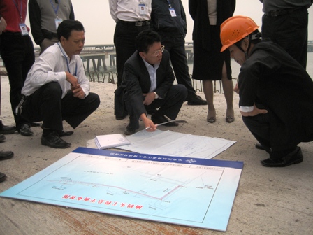 11月18日,湛江港務(wù)局(集團)董事長鄭日強、副總裁劉恩懷一行到三公司湛江港300號、油碼頭、寶滿一期工程視察工作。劉副總裁聽取了項目施工進度、質(zhì)量等情況以及湛江港發(fā)展規(guī)劃的介紹。劉副總裁對項目進度、安全、質(zhì)量表示滿意,同時強調(diào)要抓緊施工步伐,爭取早日完工。
