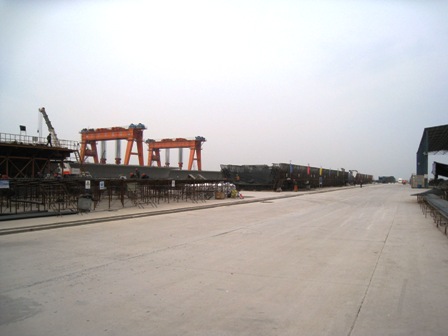二公司承建的青島海灣大橋第12合同段,是整個(gè)大橋建設(shè)的最大標(biāo)段,主要負(fù)責(zé)376片長60米、寬17米、重2080噸大型箱梁的整體預(yù)制、運(yùn)輸和吊裝。這標(biāo)志著四航局乃至中交股份在跨海大橋建設(shè)中取得新突破,實(shí)現(xiàn)了大型箱梁的預(yù)制、運(yùn)輸和吊裝一體化施工。
