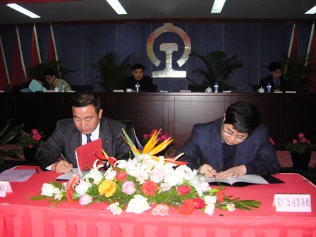 12月23日上午9時(shí),貴廣鐵路施工單位合同簽字儀式隆重舉行,鐵道部貴廣鐵路公司籌備組常務(wù)副組長王同軍,業(yè)主、施工單位代表四航局董事長梁卓仁分別在GGTJ~13標(biāo)合同上簽字。