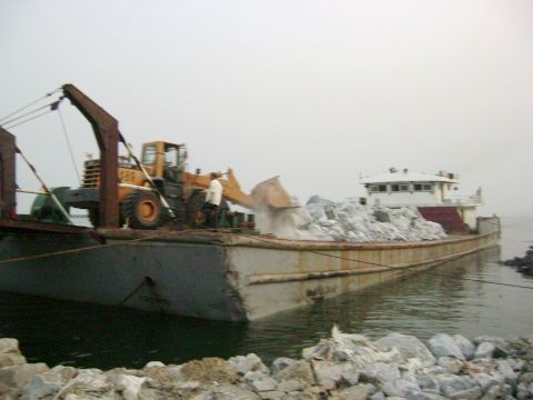 1月22日,尼日利亞項目部開始拋石施工,標志著該項目部水上施工作業(yè)正式啟動,同時拉動了石場、轉(zhuǎn)運站兩個工區(qū)的生產(chǎn)。至此,該項目開始步入實質(zhì)性施工階段。