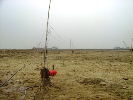 南沙糧食碼頭試驗區(qū)科研項目采用深井降水聯(lián)合強夯的新型"靜-動力"超軟弱地基加固技術(shù)加固軟弱地基。目前,已完成全部處理面積22500平方米的強夯工作,正進行加固后效果檢驗,積極準備工程驗收,總結(jié)科研試驗成果。