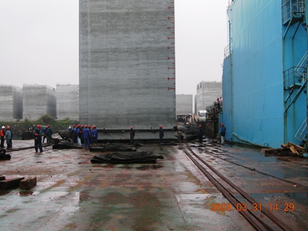海口港馬村港區(qū)擴(kuò)建一期工程沉箱預(yù)制件共75件,第一批沉箱預(yù)制工作自從2008年5月23日開始,目前已經(jīng)完成四條生產(chǎn)線共45件沉箱的預(yù)制任務(wù),2009年3月10日開始沉箱出運準(zhǔn)備工作,并于3月26日開始第二批沉箱的預(yù)制。目前,第二批沉箱工作和沉箱出運工作正有條不紊地 。