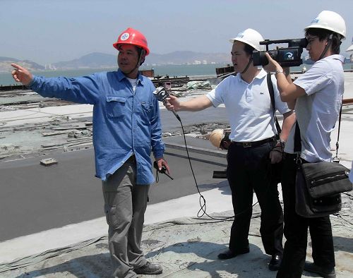 5月1日上午,珠海電視臺到珠海高欄港2個5萬噸級集裝箱碼頭工程進(jìn)行采訪。項目部調(diào)度吳錫明接受采訪并表示,項目部將上下全力以赴,搶抓施工時機(jī),確保實現(xiàn)珠海集裝箱碼頭工程630節(jié)點目標(biāo),向珠海人民交上一份滿意的答卷。