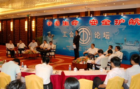 5月26日,由廣東省總工會、省安全生產(chǎn)監(jiān)督管理局、省海員工會聯(lián)合主辦的"關(guān)愛生命,安全護(hù)航"工會論壇活動在廣州遠(yuǎn)洋賓館舉行,省海員系統(tǒng)企事業(yè)單位負(fù)責(zé)安全生產(chǎn)的行政負(fù)責(zé)人、工會主席等約100人參加了論壇會。省總工會副主席張國興,省總黨組成員、紀(jì)檢組長肖建葵到會講話。