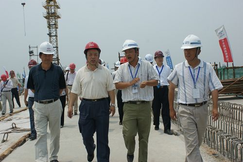 7月10日,原鐵道部副部長(zhǎng),現(xiàn)京滬高鐵股份有限公司董事長(zhǎng)蔡慶華在京滬蘇州指揮部指揮長(zhǎng)拉有玉的陪同下,蒞臨四航局京滬高鐵項(xiàng)目部視察工作。