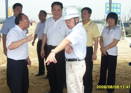 8月8日,廣東省省委常委、組織部部長胡澤君,湛江市市委書記陳耀光,市長阮日生一行到三公司湛江港寶滿集裝箱碼頭一期工程工地視察,對寶滿一期工程的施工進(jìn)度、規(guī)范化管理以及中交四航局顯示出的綜合實力給予充分肯定。