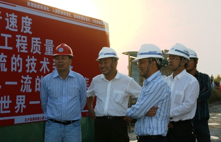 10月20日,中交股份副總裁陳奮健、總工程師林鳴在四航局董事長梁卓仁的陪同下,到滬寧城際鐵路跨蕰藻浜河、跨百安公路特殊橋梁施工現(xiàn)場視察指導工作。