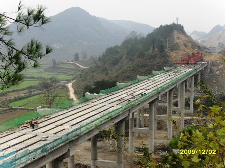樂雍1#橋共需架梁108片(左、右幅各54片),右幅首片T梁于10月27日上午開始安裝。期間,項(xiàng)目部克服場地狹小、梁板轉(zhuǎn)運(yùn)困難及冬雨天氣等不利因素,不斷摸索總結(jié)經(jīng)驗(yàn),于11月30日圓滿完成樂雍1#橋54片T梁的架設(shè)任務(wù)。