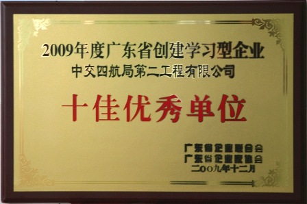 在2009年企業(yè)發(fā)展高峰會(huì)上,二公司榮獲"廣東省創(chuàng)建學(xué)習(xí)型企業(yè)十佳優(yōu)秀單位"稱號(hào),二公司黨委書(shū)記萬(wàn)軍杰榮獲"廣東省創(chuàng)建學(xué)習(xí)型企業(yè)十佳突出貢獻(xiàn)獎(jiǎng)"。