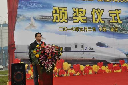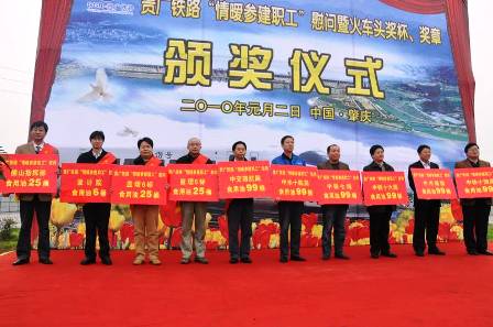 1月2日,貴廣鐵路"情暖參建職工"慰問暨火車頭獎杯、獎?wù)骂C獎活動隆重舉行,四航局貴廣項目喜獲中華全國鐵路總工會授予的2009年客運專線建設(shè)火車頭獎杯,四航局貴廣鐵路工程指揮部常務(wù)副指揮長盧玉榮和三項目經(jīng)理部鄧宏觀榮獲2009年客運專線建設(shè)火車頭獎?wù)隆?/P>